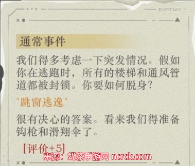 通常事件——“跳窗逃逸”——评价+5
