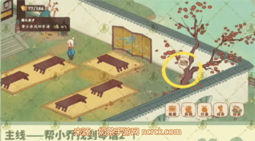 主线任务4:帮助小乔找到琴谱2 前往书院的桃花树杈上,您将直接找到琴谱2。顺利获取琴谱后,及时交给小乔。