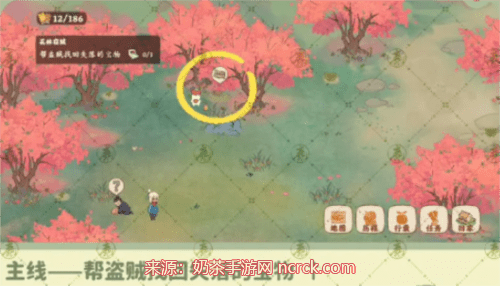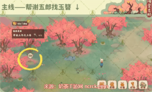 主线任务2:帮助谢五郎找到丢失的玉簪 在左侧第二棵桃树下,您将找到谢五郎丢失的玉簪。仔细搜索该位置,找到并归还玉簪给谢五郎。
