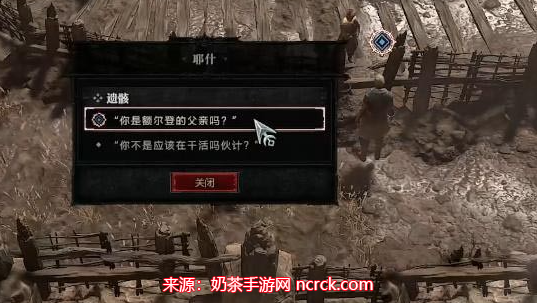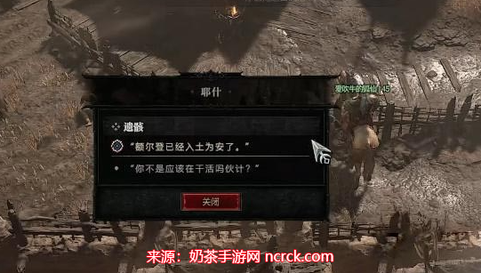 4、完成消灭饥饿血鹰后是会到耶什这里,将埋葬好的事情跟他说,那么对话结束这个任务就完成了。
