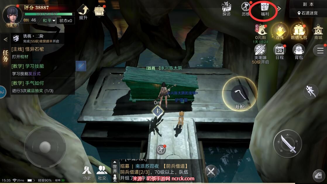 1、首先,进入新盗墓笔记游戏后,务必完成主线任务以提升等级,并解锁福利系统。