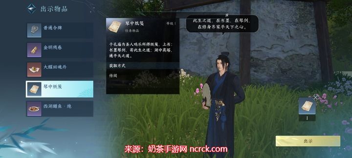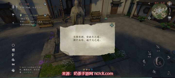 3、孔庙内,触发孔子像前的蒲团,获得一本乐谱。