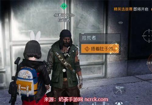 2、在特定位置,您会发现一名拾荒者。与他进行对话并互动,然后给他一份烤肉。