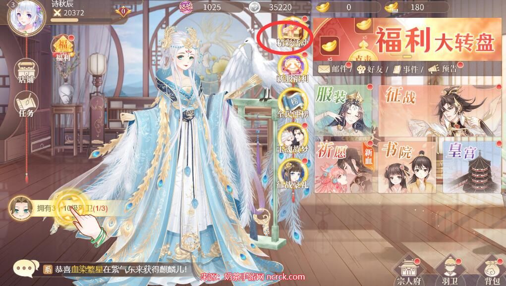 1、打开青鸾繁华录游戏,点击屏幕上的"精彩活动"按钮。