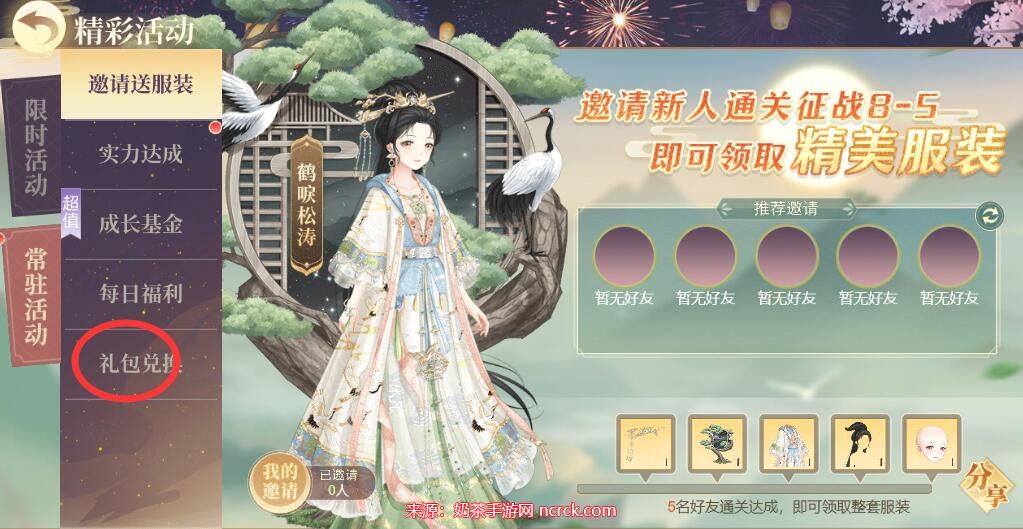 3、在常驻活动界面中,会看到一个礼包兑换的选项。