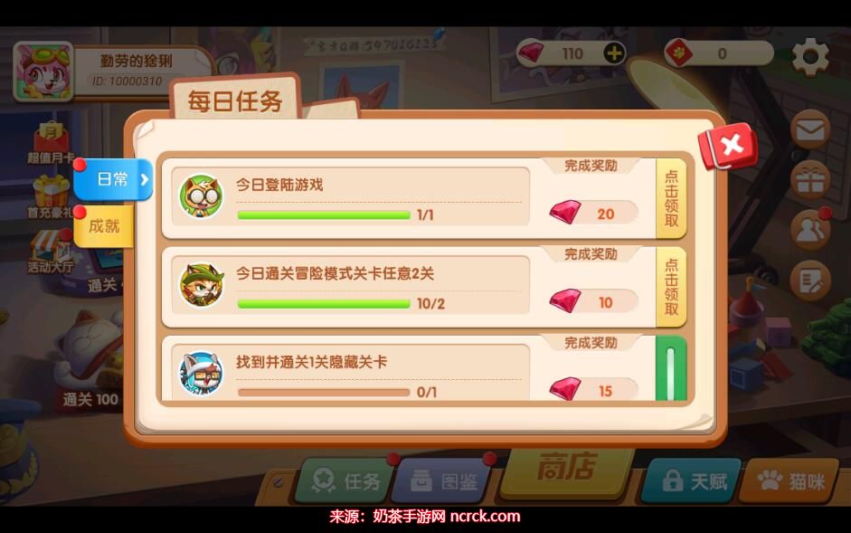 4、最后,点击确定即可领取钻石、猫咪等奖励。