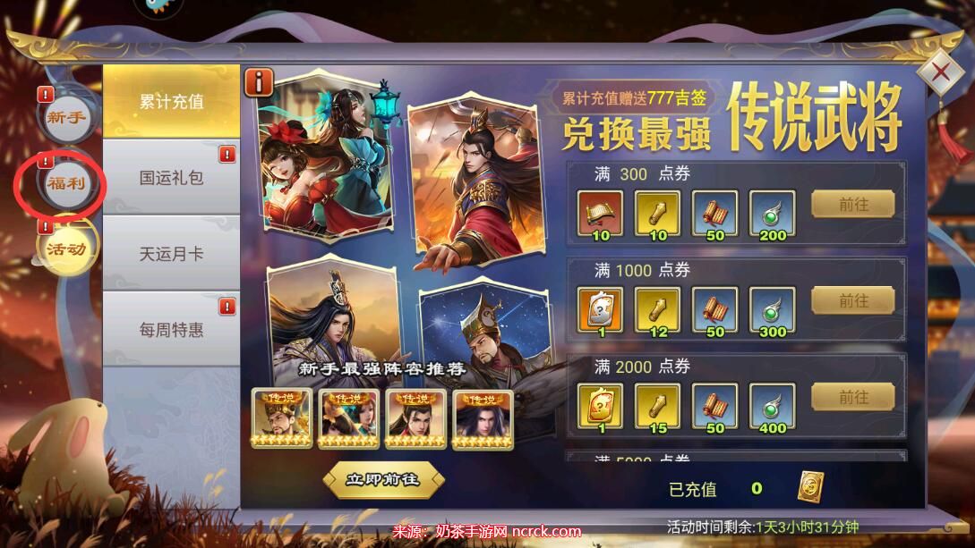 2、进入福利选项页面。