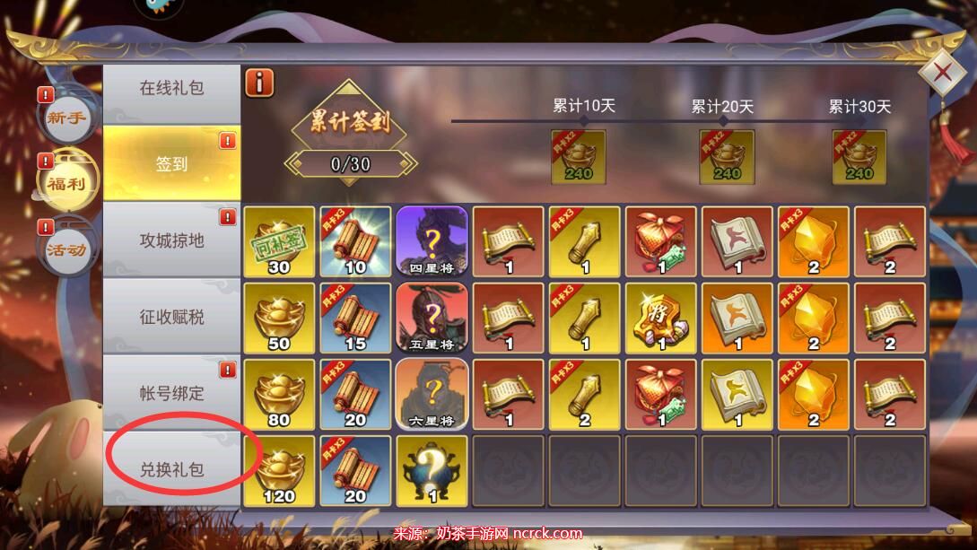 3、向下滑动页面,找到兑换礼包的按钮。
