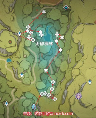 1、无郁稠林西线: 在无郁稠林西线,您可以找到8个树王圣体菇采集点。这些菇位于蘑菇的伞柄中。