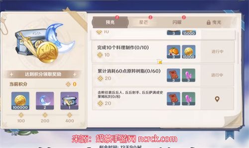 【归还之路】(活跃任务):完成指定任务后可获得10W摩拉、2个脆弱树脂、一定数量的武器原胚、经验书和矿石。