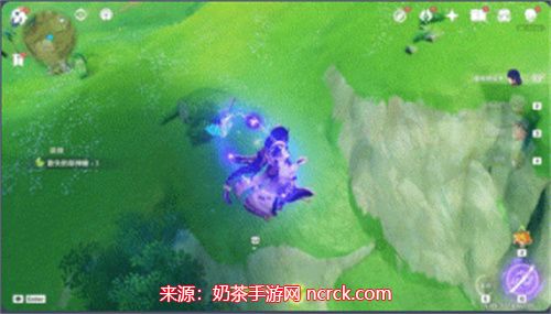 6、最后,按下J键,利用四叶草印记的快捷方式,直接飞入山洞内部。
