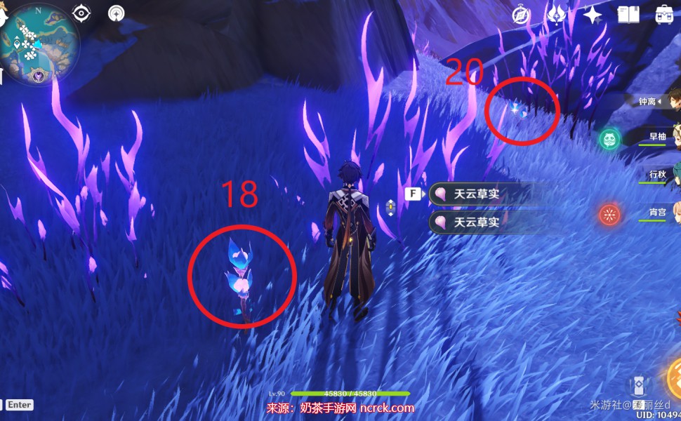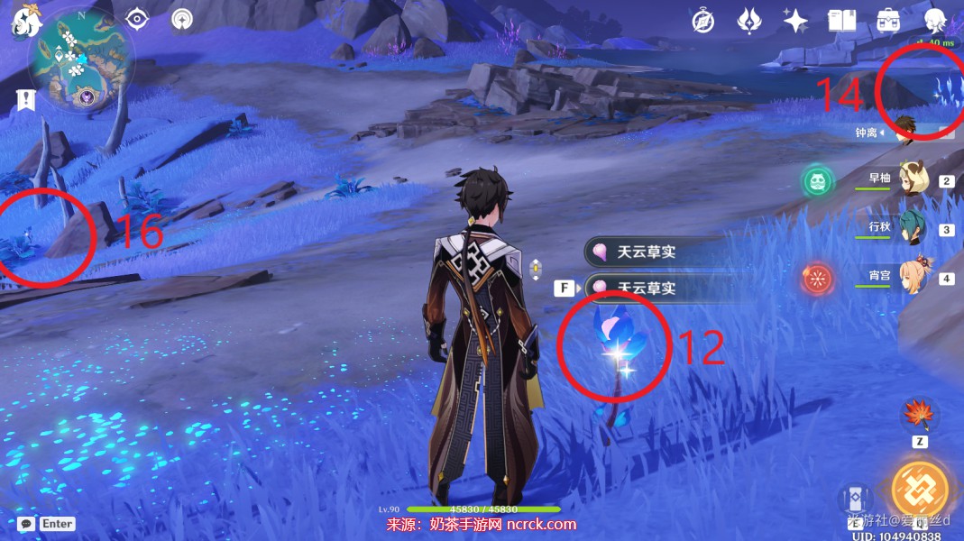 3、本图中标注的位置是容易找到的,不仅有60颗天云草实,而且走几步就会遇到天云草。如果您想简化图中的标点,也没有问题。