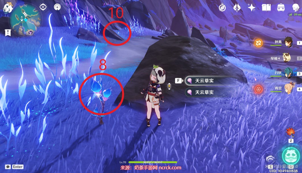 5、第二个传送点下面是天云草实最多的地方。那里的视野开阔,容易找到,尤其是在方块解谜的周围,有许多天云草植株。