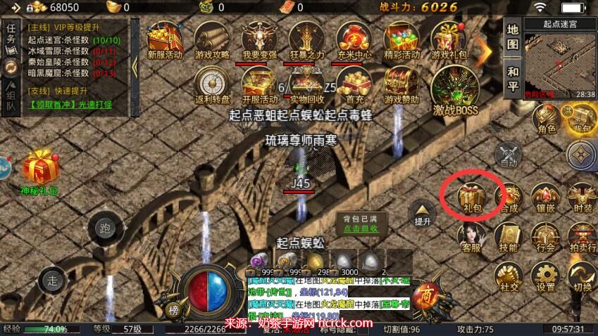 2、寻找并点击礼包图标。