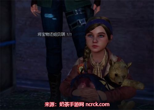 2、找到贝琪: 接下来,根据任务指引,前往红木哨所右侧,找到名为贝琪的NPC角色。将拾取到的小熊娃娃交给贝琪。