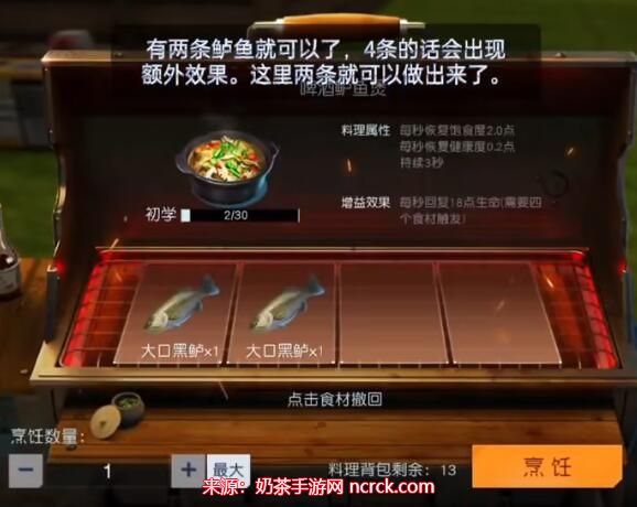 2、如果您成功地制作了四条大口黑鲈的啤酒鲈鱼煲,将获得额外的增益效果:每秒恢复18点生命值。