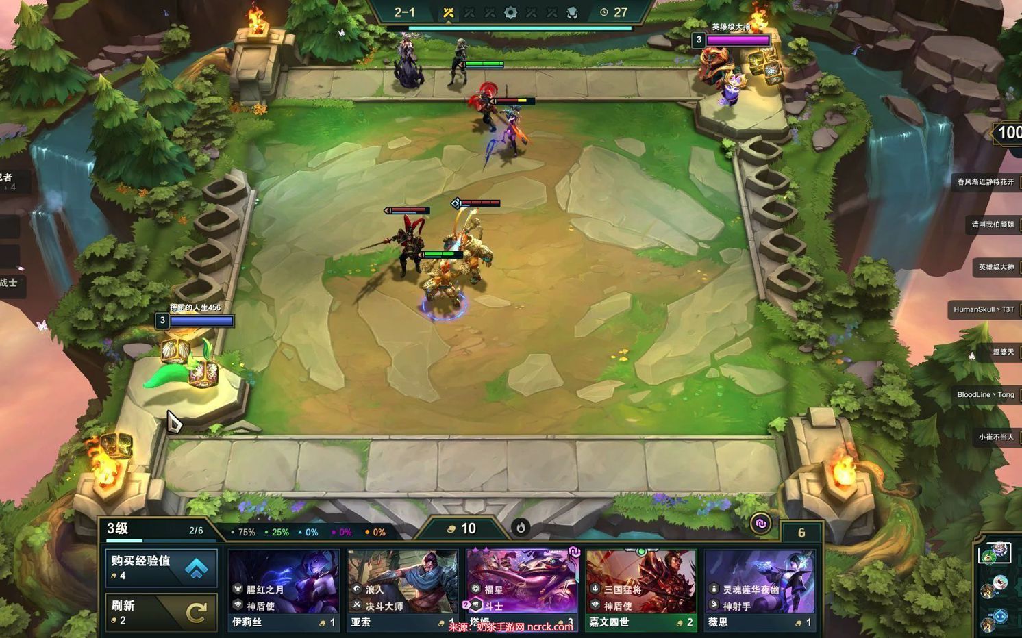 3、成型阵容:剑姬+尼菈+亚索+天使+薇恩+卡牌+牛头+艾克。