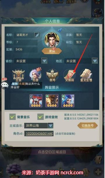 2.进入个人信息界面后,点击兑换码,如图所示