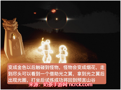 收集方法:当你处于金色形态时,触碰到怪物,它会化为烟花消失,沿着路径继续前行你将看到一对助飞的翅膀,拿到这对光之翼后又将出现一个光圈,再次冥想后若成功通过试炼,你将回到预言山谷。