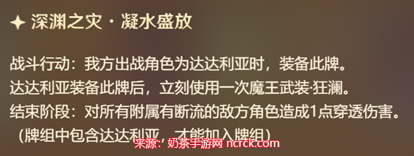 达达利亚装备此牌后,立刻使用一次魔王武装·狂澜。