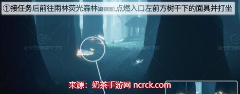 任务的面具冥想点位于雨林图二的荧光森林(带有冥想亭)。