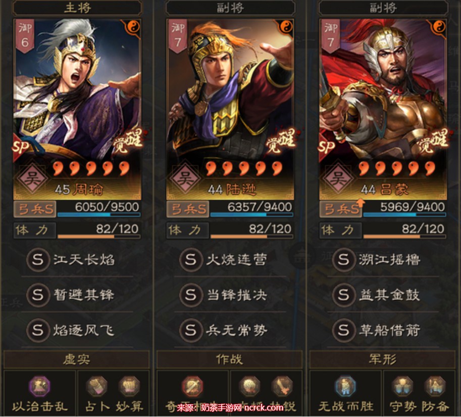 这个阵容以火攻为核心战术,利用周瑜的夺魂挟魄和智计,陆逊的白眉和风助火势,以及吕蒙的白马义从和火炽原燎,来发动强力的火攻效果。周瑜和陆逊提供了额外的控制和输出能力,而吕蒙则在火攻伤害和群体控制方面发挥重要作用。