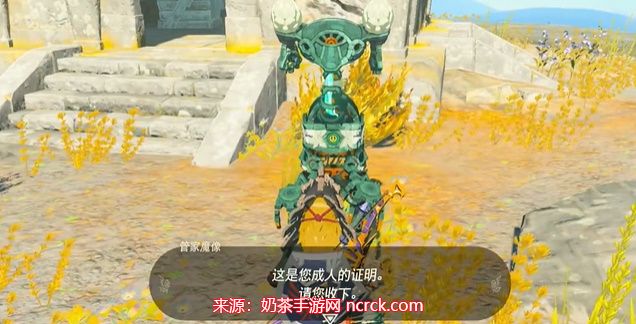 5、接着这个管家魔像会对玩家们的速度做出评价,给出滑翔面罩的奖励。