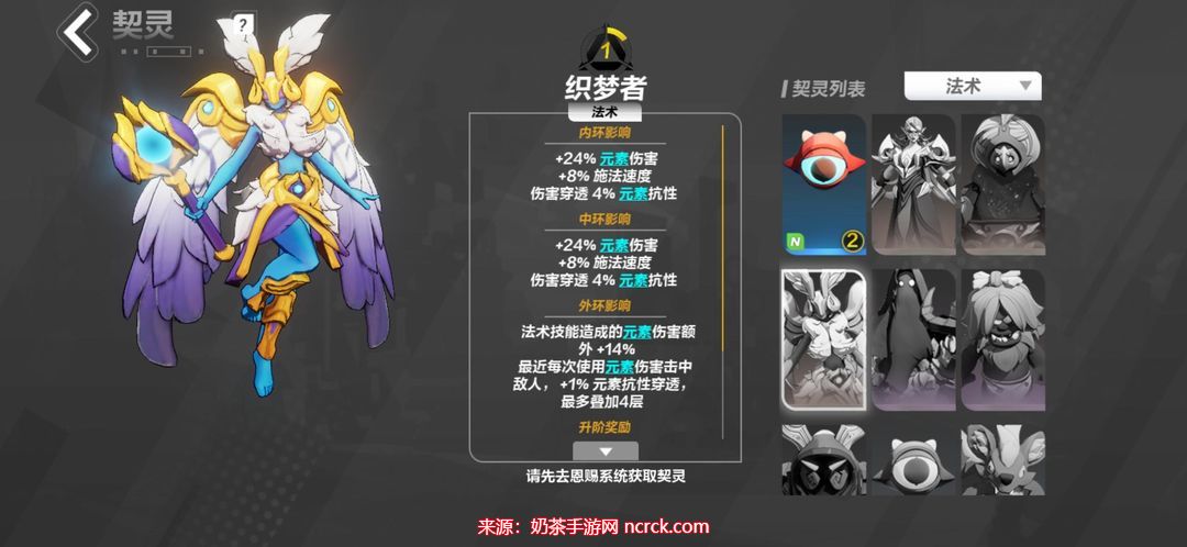 2、织梦者:织梦者是一只比较常见的法术金宠,在前期靠元素施法造成伤害的角色都可以选择带上他。