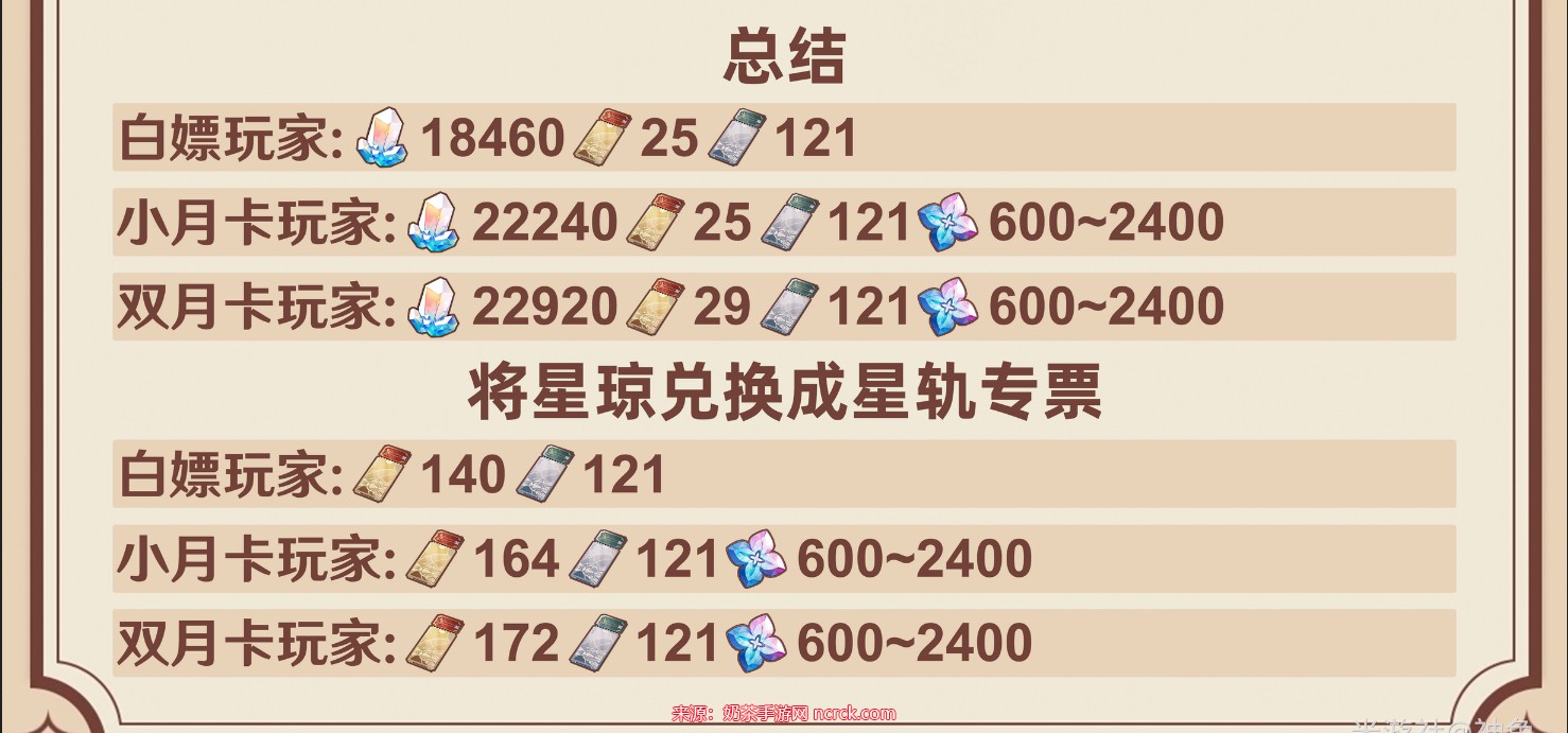 零氪玩家一个月能够获得3640星琼。对于新手玩家来说,他们能额外获取3900星琼。而小月卡玩家则可以多得3000星琼。对于同时购买大小月卡的玩家来说,他们能够额外获得4160星琼。