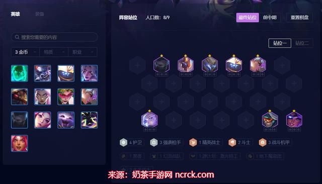 在七人口将希维尔升至三星后,再升级到八人口,并尽量将盖伦升至两星,这样阵容将更加稳定。