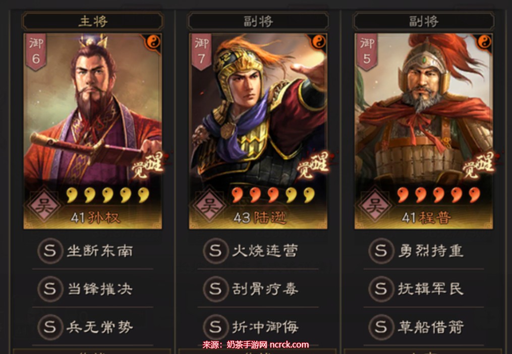 这套阵容是一个白板阵容组合,适合大多数玩家使用。孙权的战法带来的破阵效果能够对抗各种慢速阵容,太史慈和周泰的战法提供额外输出和控制能力。