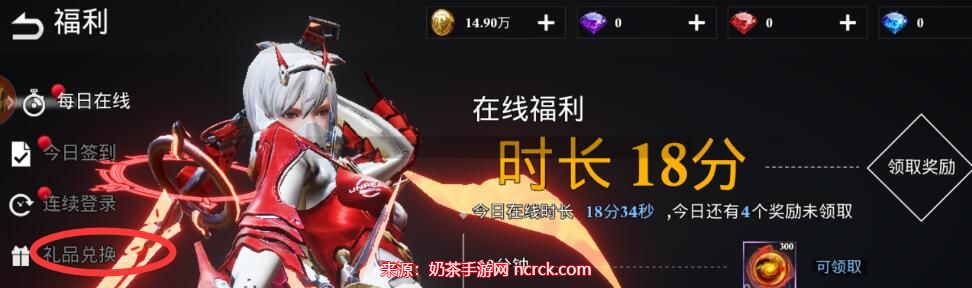 2、然后我们在福利中心找到礼品兑换的选项