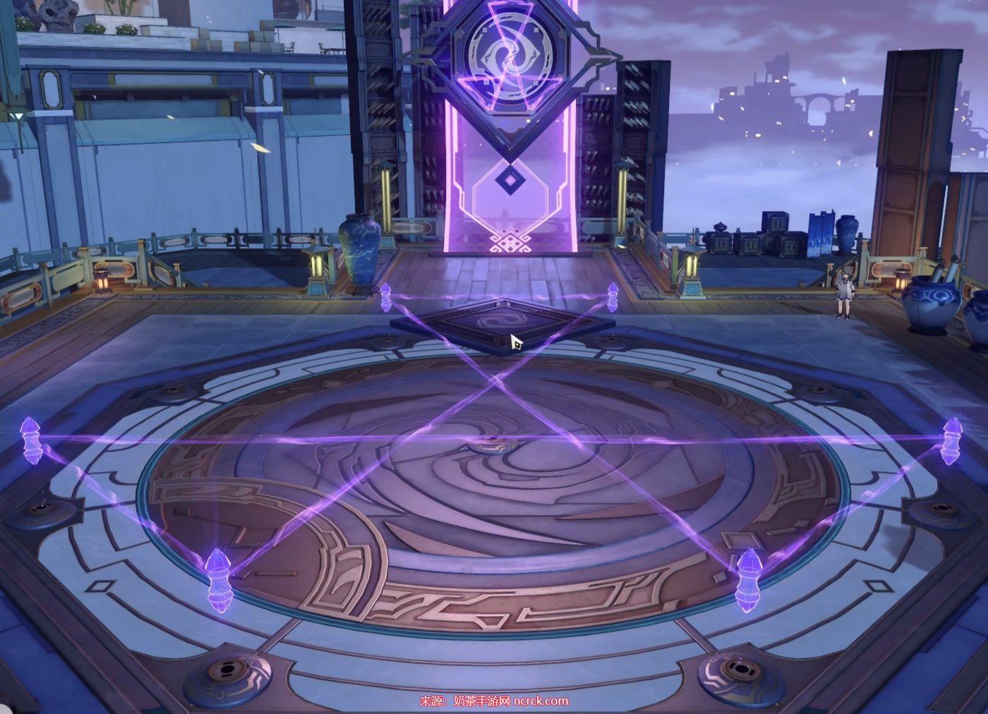 绘星会带领你前往阵法位置,移动至中央启动阵基(如需重置,可在原地进行)。根据前方幕布提示的阵法,调整水晶位置,使其与幕布上的一致,即任务成功。