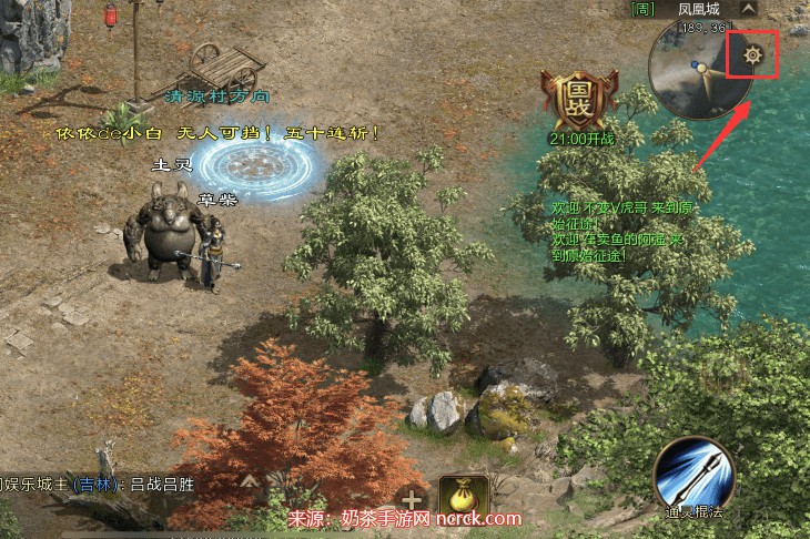 2、升级到17级后,右则显示地图,并点击地图上的【设置】图标;