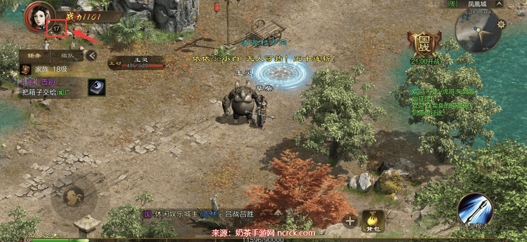 1、打开巨人原始征途手游创建角色,并将角色等级通过任务升级到17级;