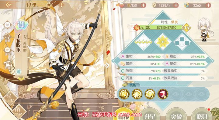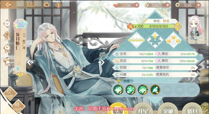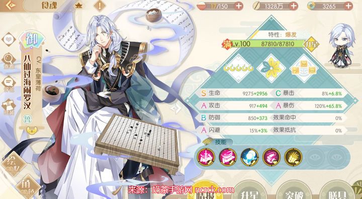 数值一般,但二技能有几率增加敌方技能冷却,大招伤害比较高,羊腰龙八中的八,不吃花就可以用1花4花增加伤害。获取方式:常驻池,困17-4掉落。