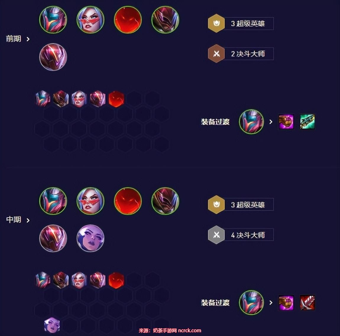 针对以1费和2费卡为主要构成的阵容,可以考虑不升级到2阶段。在前期,只需集中攻打目标英雄,可以选择连败以积攒经济,在3-1时,冲刺D牌并尽可能地将所有体系的卡牌升至2星或以上。如果核心阵容都已经到位,并且手牌顺畅的话,可以将余下的金钱花在搜索卡牌上,稳定血量和积攒经济,利用利息去搜索其他的三星卡牌,或升级人口来补充更多的羁绊和英雄。