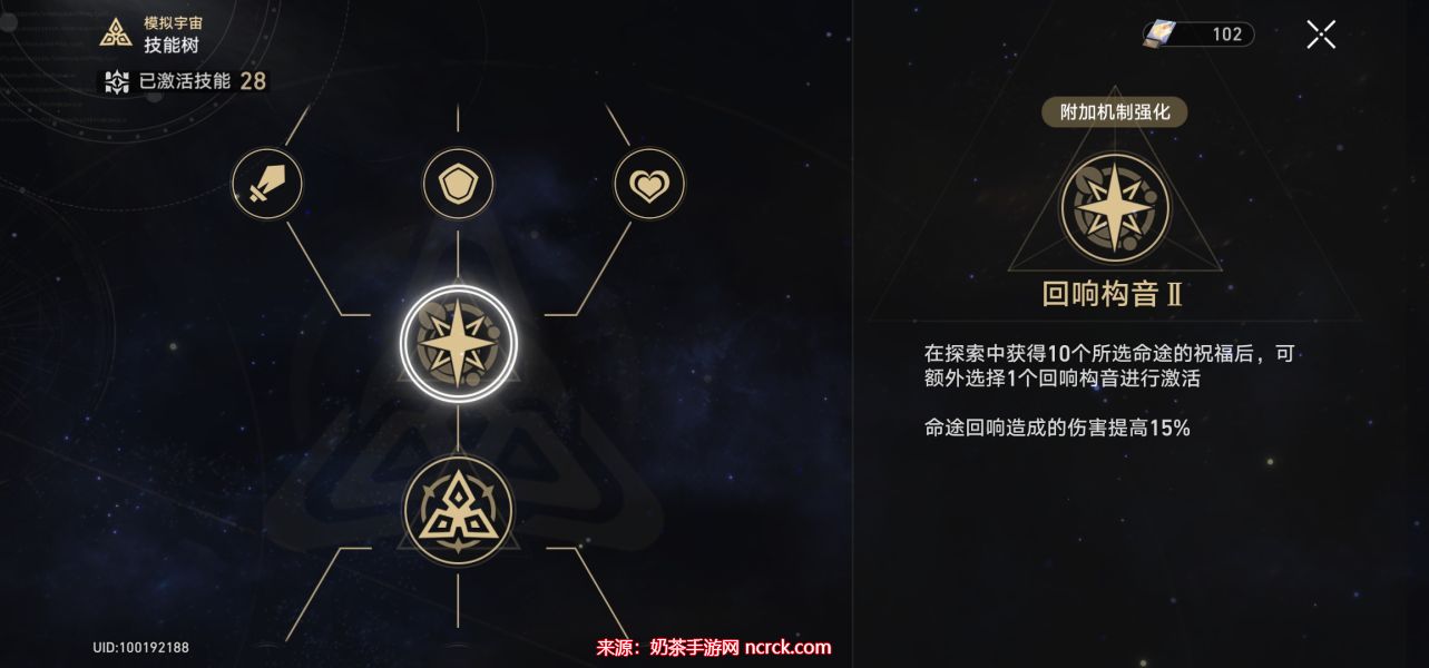 此外,虚无流派比较依赖回响构音,因此最好将技能树点到回响构音Ⅱ,以获取两个虚无星神的回响构音。