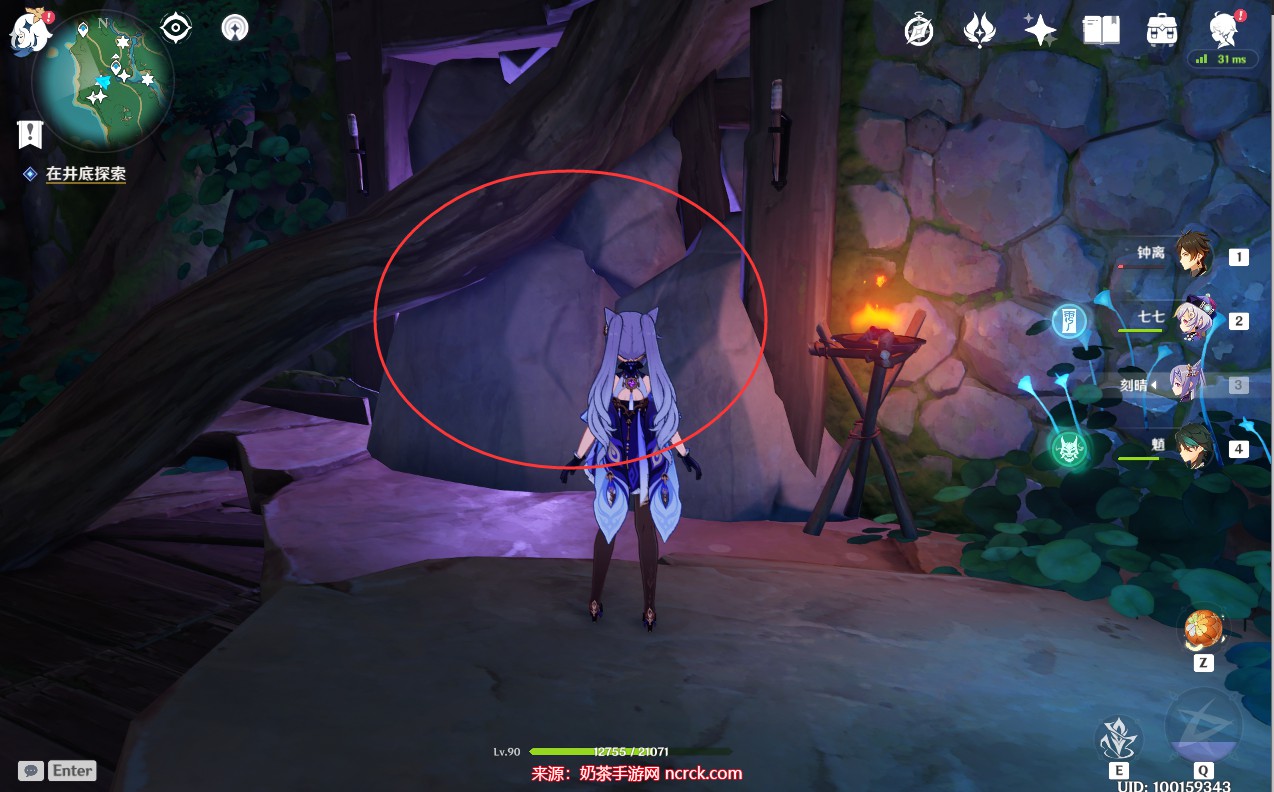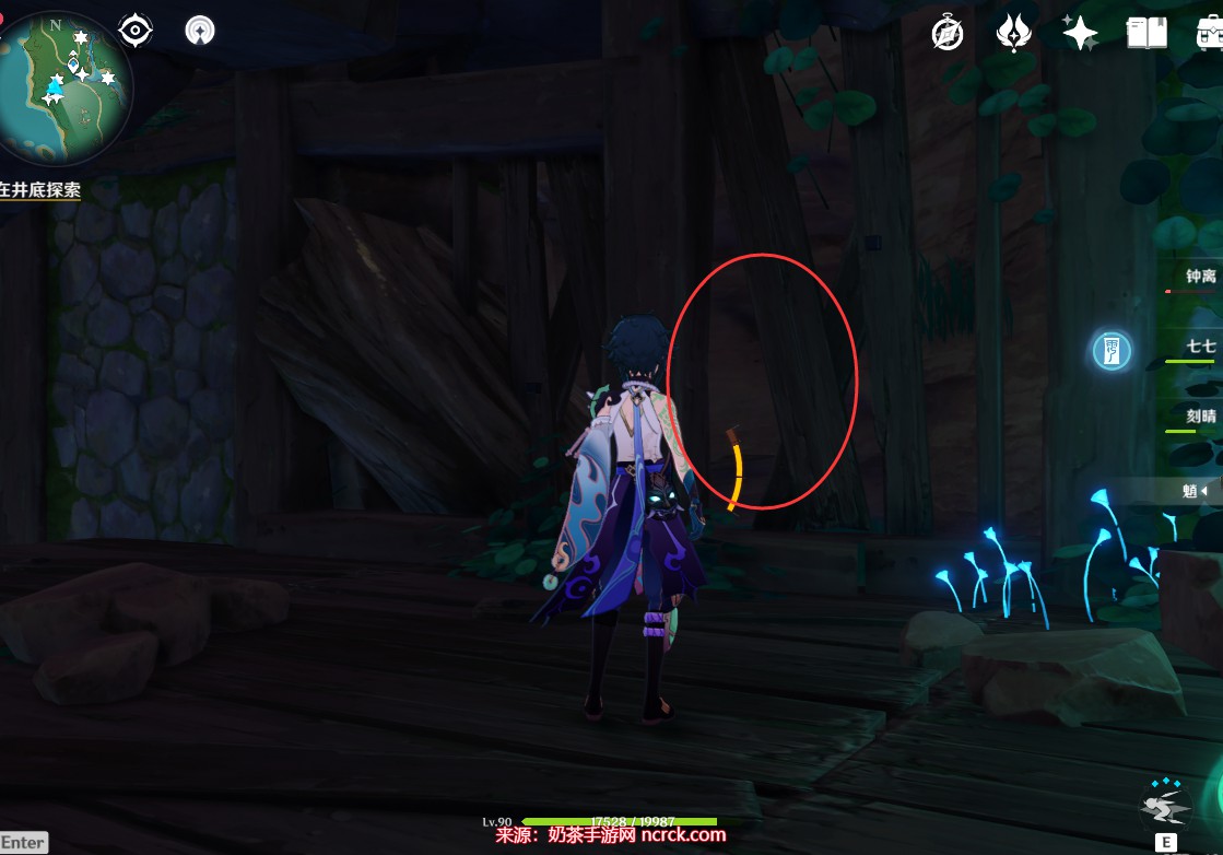 3、根据定位找到一个井,用钥匙把井打开,进入绀田村的井下