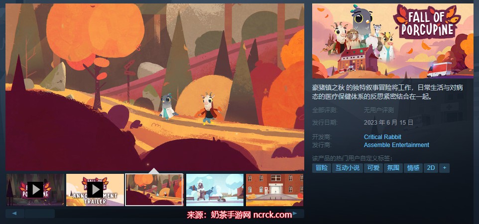 叙事冒险游戏《豪猪镇之秋》将于6月15日登陆Steam平台,支持中文,目前可以体验免费试玩demo。