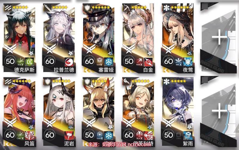 之后按顺序放下白金、拉普兰德、泥岩、絮雨、夜莺和风笛(注意风笛和夜莺朝向)