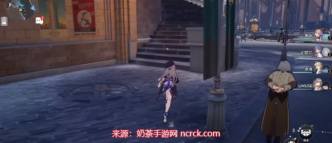 9、转一下视角,绕到楼梯后面的路墙上也可以看到三月七的画像,同样收集;