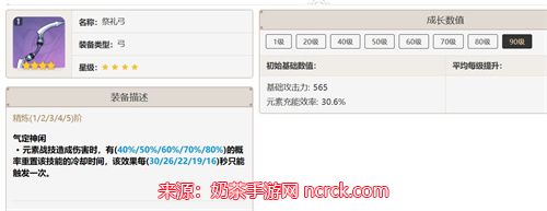 这把武器是四星武器的首选。不仅有着超高的元素充能词条可以增加角色是释放大招的频率,并且重置元素战技的效果可以给增加角色的辅助效果。
