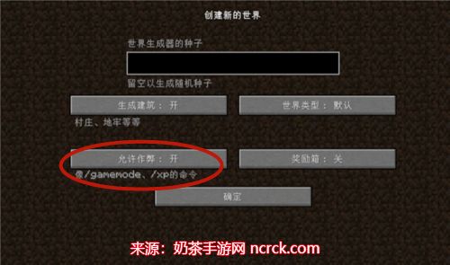 第一步:在新创建的世界中,开启【允许作弊】。