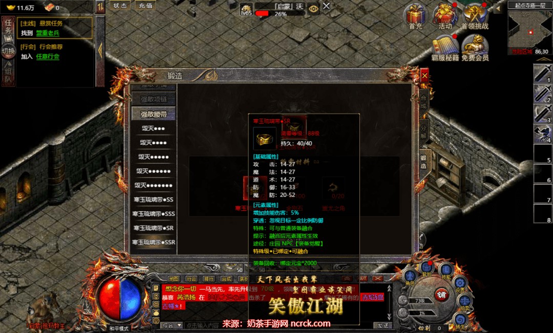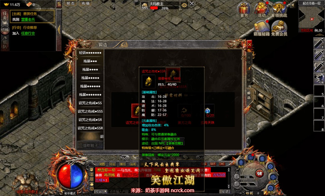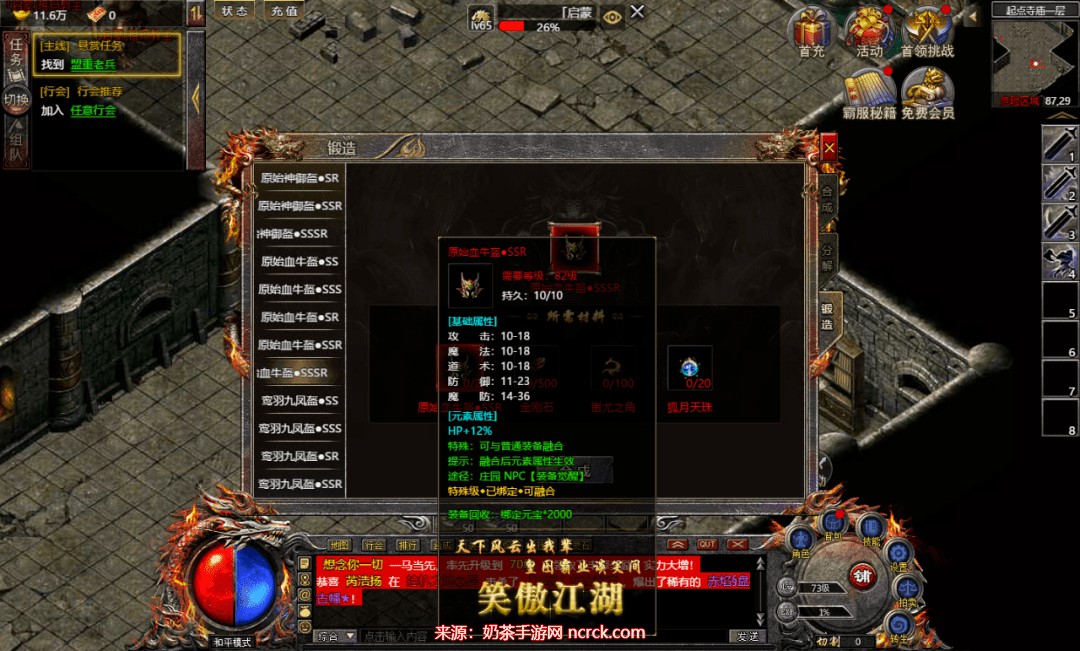 为了让大家能更快捷合成各种等级的强散装备,大家可以前往庄园的NPC“神界使者”处,提供金刚石、蚩尤之角、绑定元宝,就能合成2-6阶的强散装备哦。