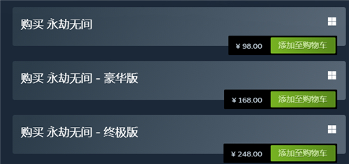 steam版:标准版98元,豪华版168元,终极版248元。