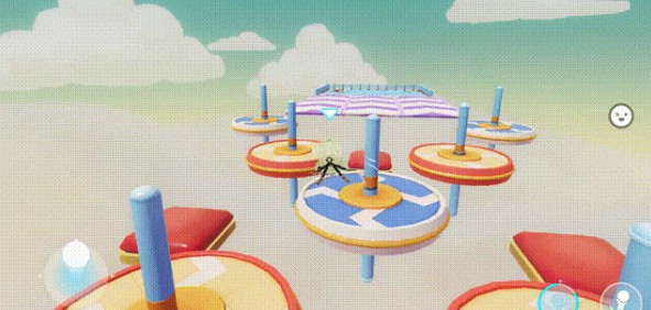 3、然后在最后的旋转平台,我们也同样直接使用加速技能往中间冲就行了,先跳蓝色旋转平台,再到弹簧垫,借助弹簧垫来到加速带冲向终点,这样就快速的完成了,果然就是极速赛道。