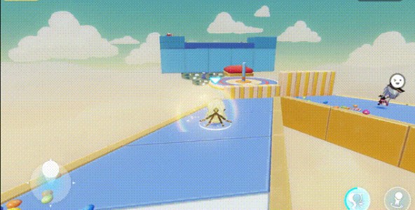 2、但是也会有可能左边的赛道的人太多了抢不到位置,那就可以往中间的弹簧垫跳,借助弹簧垫来到下一区域,也是比较方便的;