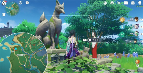 3、任务稻妻·绀田村上方传送锚点附近的天狐像前。