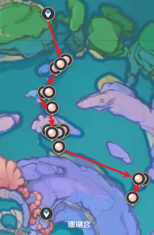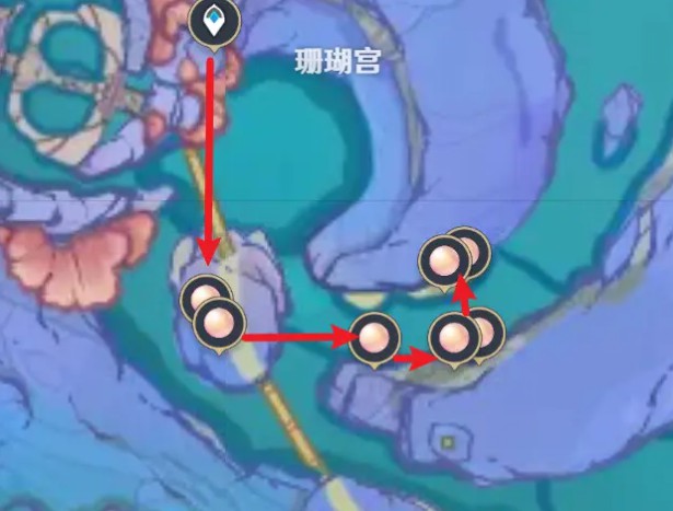 路线一:珊瑚宫上方(15个珊瑚真珠)